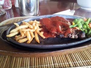 Aku yang sama sekali buta arah di Bogor beruntung banget pas Tiesa bersedia menjemput di Stasiun Bogornya. Janjiannya di pintu masuknya dan karena blogger yang pastinya sering narsis di blog gak susah deh kami saling mengenali. Karena bingung juga mau kemana akhirnya Tiesa ngajakin ke tempat makan. Sesuai dengan motonya Bogor menurut Tiesa : makan-makan, ngobrol-ngobrol! :mrgreen: