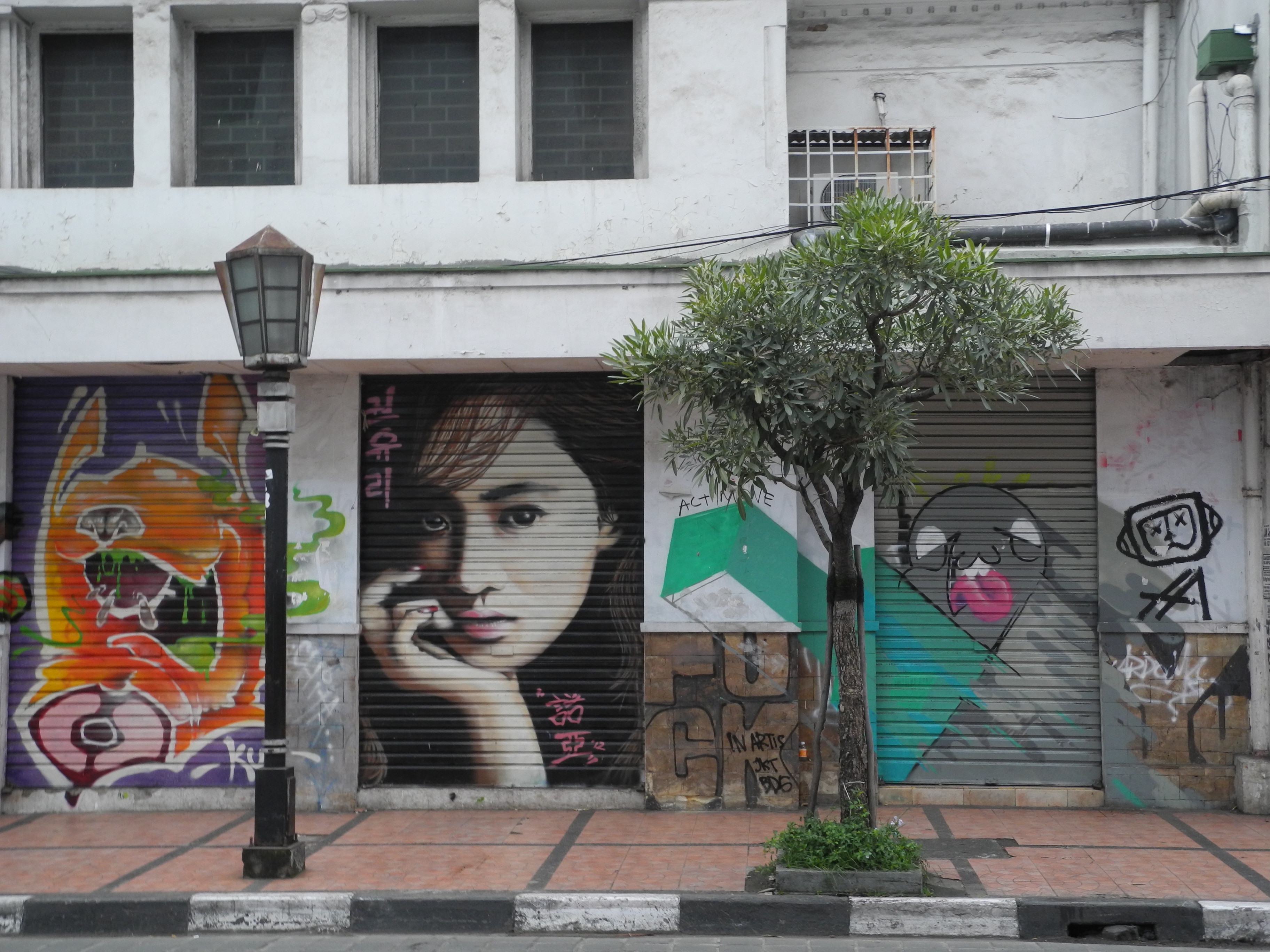 karena aku jalannya pagi jadi masih tutup semua tin tokonya, bener-bener sepi deh, cuma menikmatin bangunannya