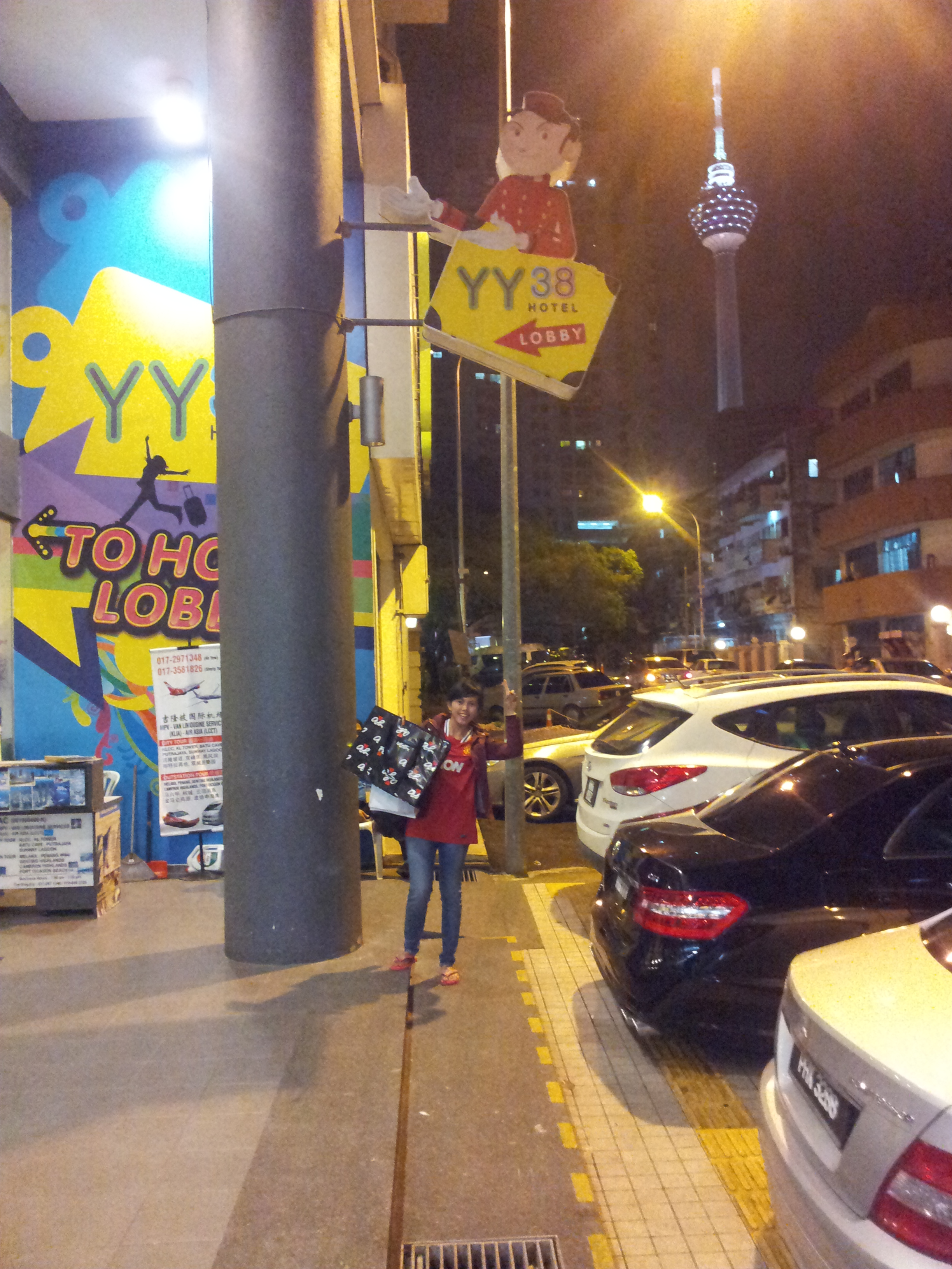 Sampai di Bukit Bintang langsung cari hotelnya. Hotel tempat aku dan abang menginap untuk 3 malam kedepan adalah YY38 Hotel alamatnya di 38 Tengkat Tongย  Shin , Bukit Bintang, Kuala Lumpur. Hotelnya ok banget menurut aku, bookingnya via Agoda dapet harga 300 ribuan rupiah. Selain lokasinya emang ok ditempat centralnya turis di L (ya guekan turis kan? ๐Ÿ˜› ).