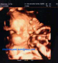 Subhanallah, akhirnya kelihatan juga wajahnya si dedek walopun belum jelas yaaaah š Senengnyaaaaa…