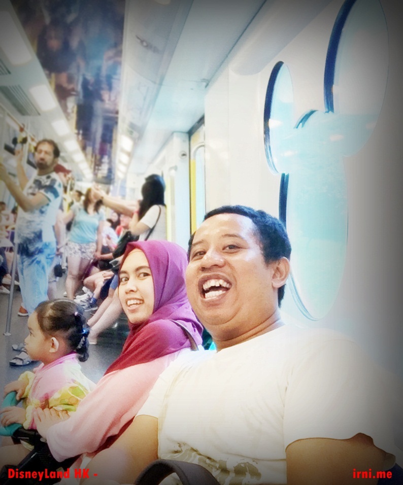 Dari hotel Ibis North Point aku ambil MTR menuju ke Central Station  kemudian di stasiun central pindah ke Tung Cung Line (orange) ke Stasiun Sunny Bay terus pindah lagi naek MTR Disneyland Resort yang keretanya bersuasana Mickey Mouse gitu.