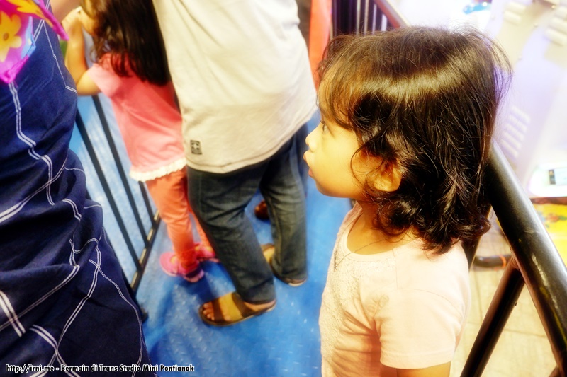 Sayangnya lagi, untuk permainan Theme Park ini fasilitas untuk antriannya sangat kurang banget untuk aku. Seharusnya kan line antrian itu panjang dan berkelok ya, agar jika terjadi antrian yang panjang gak ada orang yang bisa menyalip antrian. Di Trans Studio Mini Pontianak ini line antriannya sangat pendek, bahkan bisa dikatakan hampir gak ada. Jadi beberapa kali antrian aku disalip sama orang :angry: Manalah petugasnya gak sigap menanggapi orang-orang nakal seperti itu. Untungnya si K udah khatam masalah antrian ini karena udah sering antri mulai dari Disneyland, Legoland sampai Everland kemaren. Jadi dia gak pernah protes atau bosen selama mengantri.