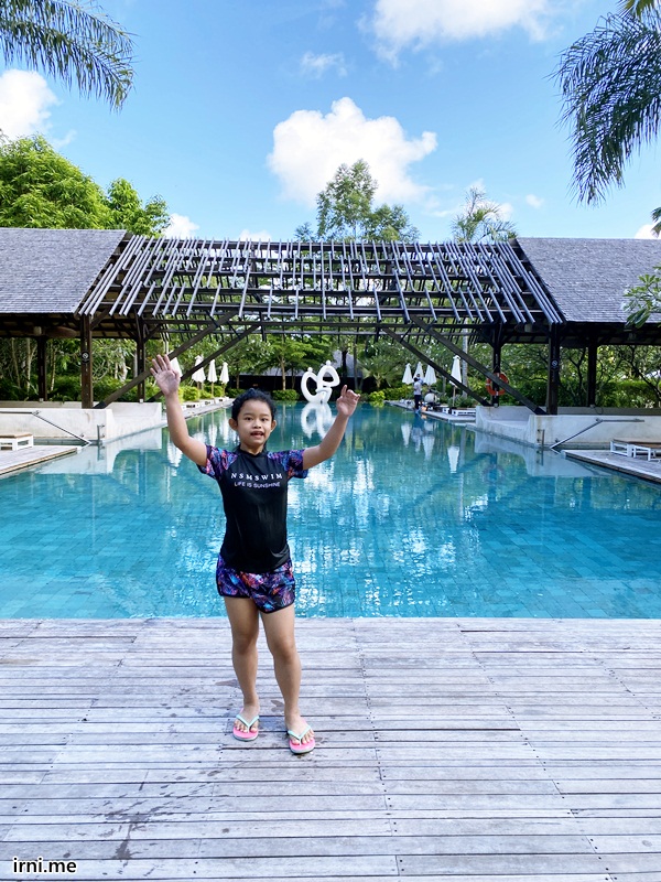 Karena kami liburan ke Bali sebagian besarnya adalah wisata hotel, makanya fasilitas hotel yang paling aku tekankan untuk pemilihannya. Untuk Movenpick ini sendiri aku pribadi sangat suka seh. Sukanya karena beberapa hal. Salah satunya karena area hotelnya luas untuk ukuran hotel baru di Bali. Biasanya kan yang hotel luas itu cuma hotel lama dan kalau hotel baru luasnya di gedung bagunan doang. Nah Movenpick ini gak cuma luas di bangunannya aja, tapi di luar bangunannya juga luas, terutama di bagian kolam renangnya.
