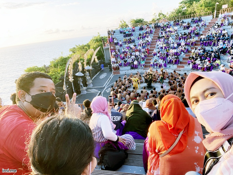 Aku sendiri udah pernah ke Uluwatu waktu pertama kali ke Bali. Tapi cuma sebentar doang, paling 30 menit untuk foto-foto kayaknya. Yang aku ingat Uluwatu itu cuma banyak monyet dan ada tebing untuk foto-fotonya. Jadilah aku ke sini emang cuma mau foto-foto aja dan pulangnya langsung cuss makan di pantai Jimbaran. Eyalah pas di sana ditawarkan nonton atraksi si K langsung bilang dia mau nonton. Katanya kenapa kita ke sini jauh-jauh kalau gak ngapa-ngapain? Padahal yang foto-foto itu ngapa-ngapain juga kan? Hahaha. Maka akhirnya kamipun langsung membeli tiket atraksi yang tak lain dan tak bukan adalah atraksi tari kecak.
