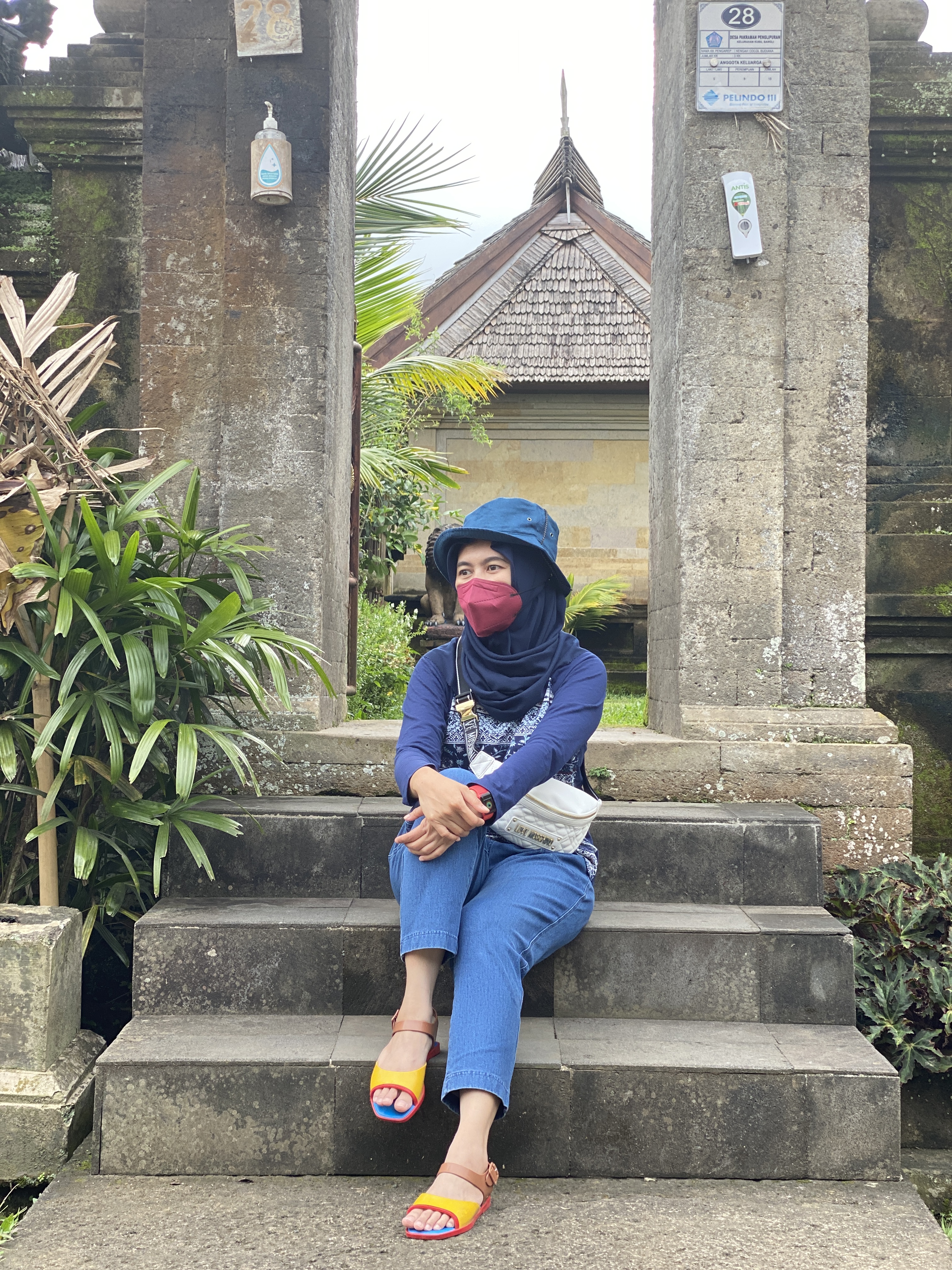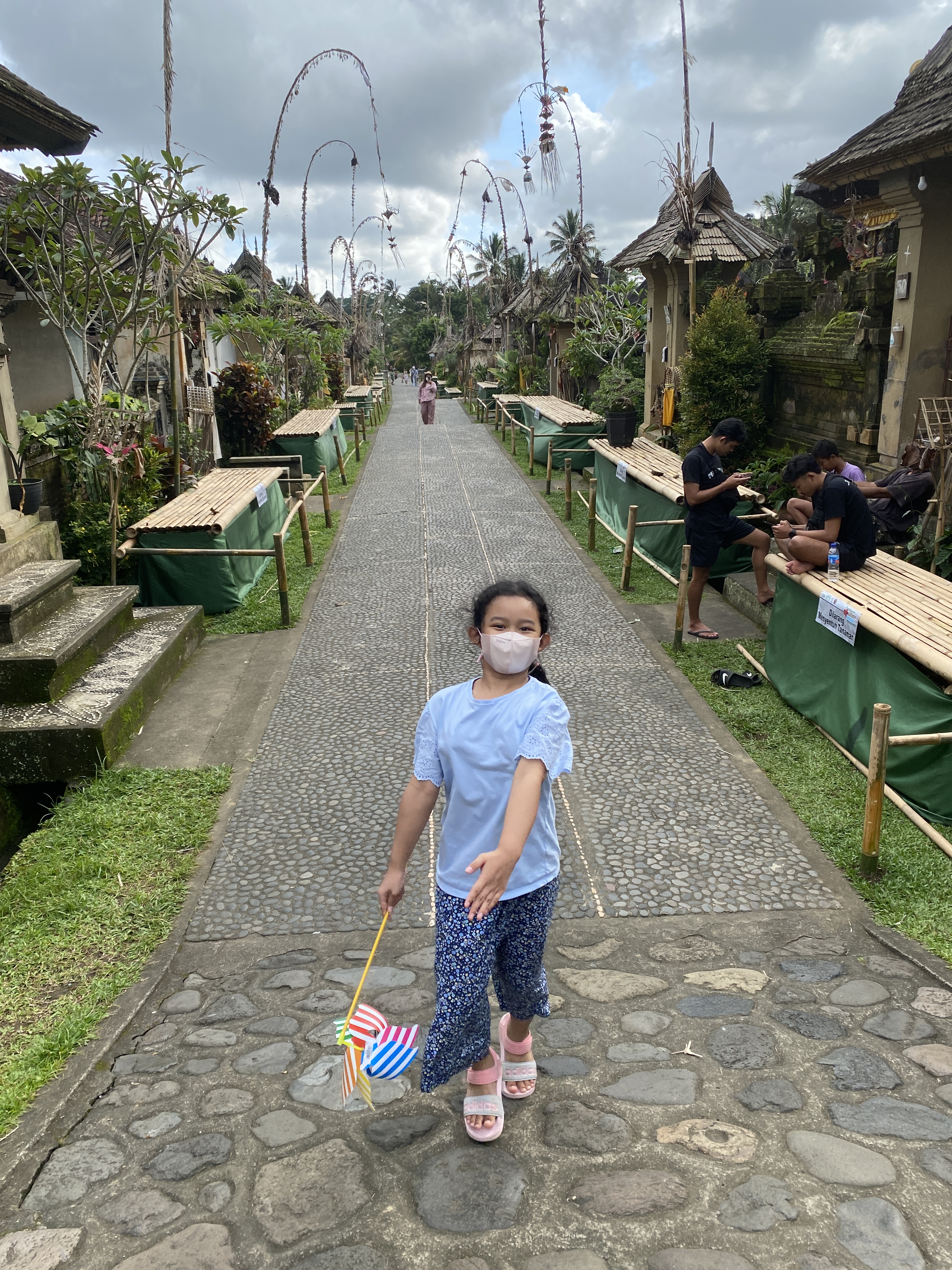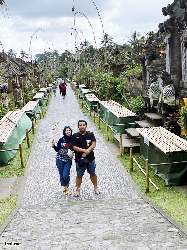 Dari Bali Safari Park, kami langsung singgah ke Desa Wisata Penglipuran. Pengen ke sini karena lihat salah satu influencer ada foto-foto di sini dan kayaknya sering juga lihat orang-orang liburan ke sini. Tempatnya sendiri gak terlalu gede ya, cuma jalan lurus segaris aja yang jalannya berbukit-bukit terbuat dari baru yang disusun rapi. Kanan kirinya itu dipagari sama pagar khas Bali dan di dalamnya ya rumah penduduk biasa sebenarnya. Tapi ada nuansa tradisional balinya deh. Disetiap rumah ini banyak yang jualan gitu. Ada yang jualan makanan, ada pakaian, atau benda-benda oleh-oleh gitu. Tapi aku gak ada beli seh, hahahaha. Diujung atas jalannya ada pura gitu dan ya udahan. Palingan panjang desanya 500 meteran gitu ya. Pokoknya pendek deh. Kalau orang suka foto-foto seh ok lah ke sini. Tapi si K gak suka karena dia bingung ke sana gak ada ngapa-ngapain selain foto, hahahaha.