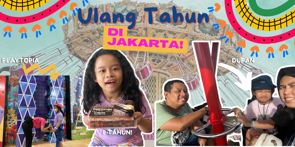 Setelah liburan ke Bali awal desember 2021, sebenarnya gak ada kepikiran bakalan liburan lagi dalam waktu dekat. Tapi tiba-tiba pas ditanyakan si K mau apa kado ulangtahunnya yang ke-8, dia bilang dia mau dirayakan di Jakarta. Pas juga dia ulang tahun hari minggu dan awal tahun 2022 itu sekolah si K masih ada sistem SFH setiap hari rabu dan jumat. Lihat-lihat tiket juga harganya lumayan ok, jadilah kita cuss berangkat ke Jakarta dari hari kamis sore.