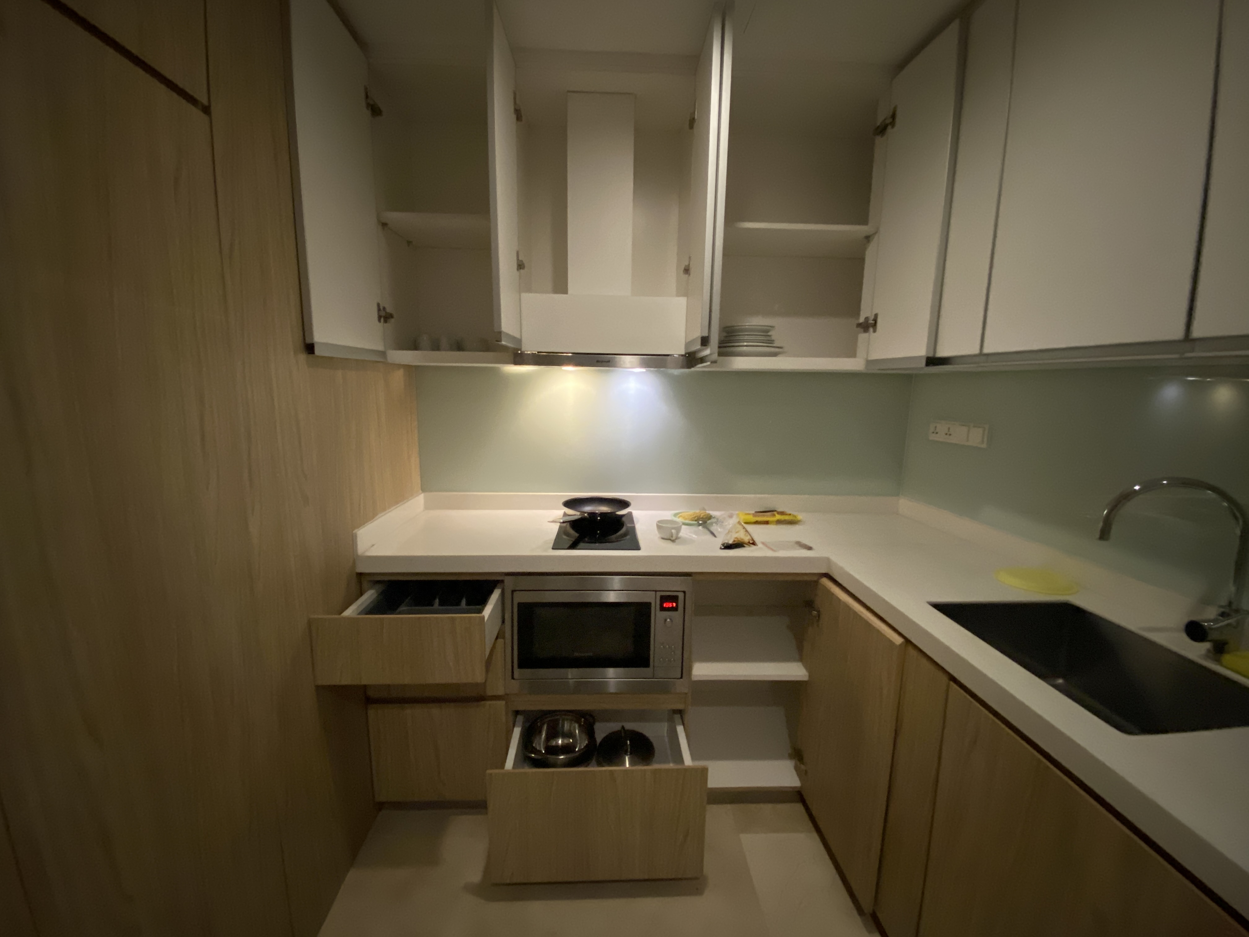 Selain ada ruang tamu, hotelnya juga udah ada dapurnya sehingga aku sempat masak dulu sarapan buat si K sebelum dia sekolah. Ini bukan hotel deh yak modelannya. Seperti apartemen service gitu yang isinya apartemen tapi ada lobi dan cleaning servicenya setiap hari. Karena kalau pesan apartemen di AirBnB aku tuh suka males duluan syaratnya yang harus dibersihan dulu sebelum pulang.