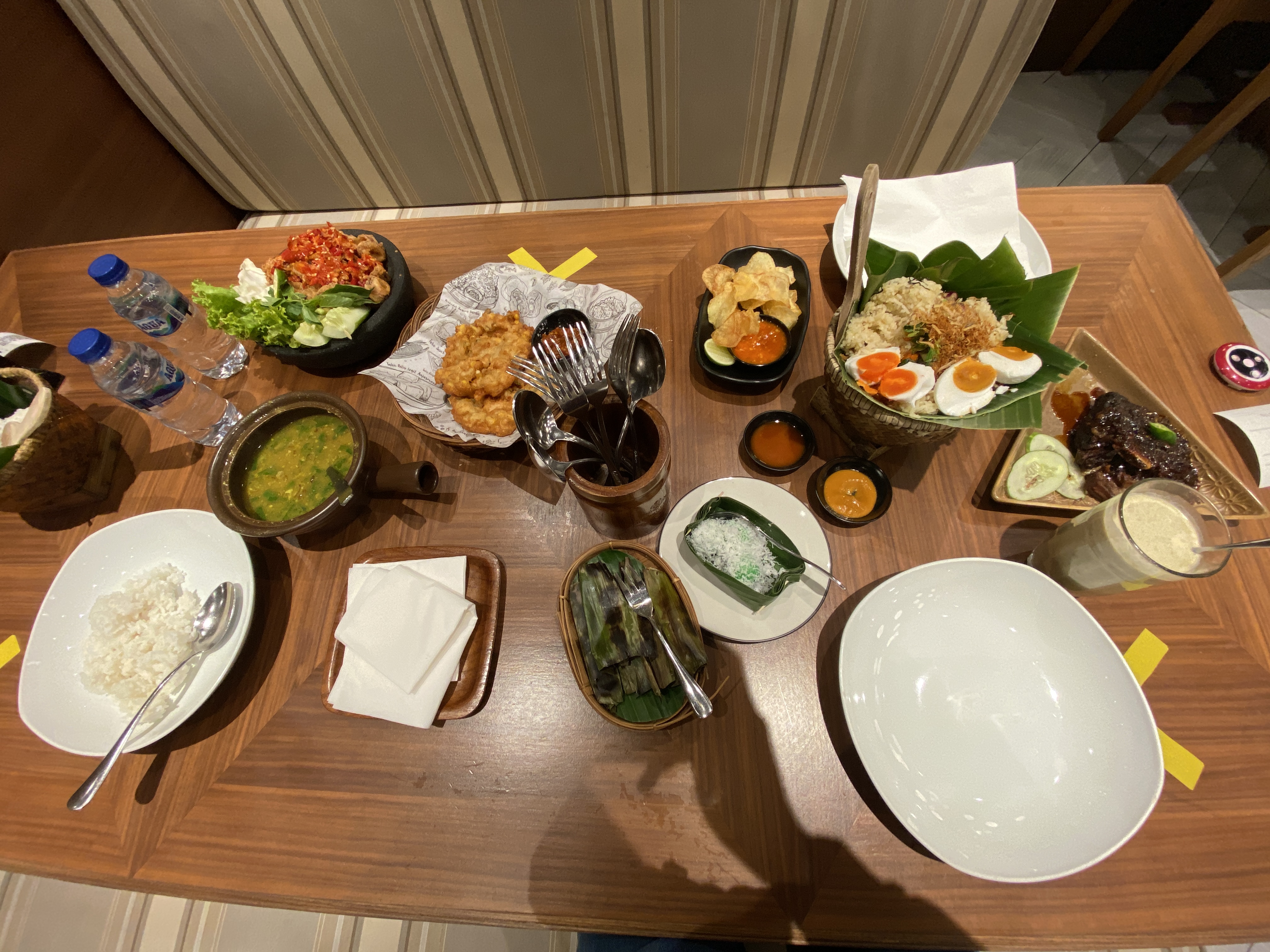 Siangnya kita makan di Lotte Mall. Kebetulan hotelnya ada akses langsung masuk ke dalam mall Lotte jadi gak susah lagi kita jalan ke tempat makannya. Pilihan tempat makanan kita kali ini adalah makan di Rembulan. Kita pesan Nasi Liwet, soto ayam, iga bakar, ayam penyet, bakwan jagung terus ada cemilan otak-otak, kelepon, jamu dan air kacang hijau. Semuanya enak! Kayaknya gak ada salah dengan semua makanannya ya, dan semenjak itu Rembulan jadi tempat makanan favorit aku sekeluarga di Jakarta