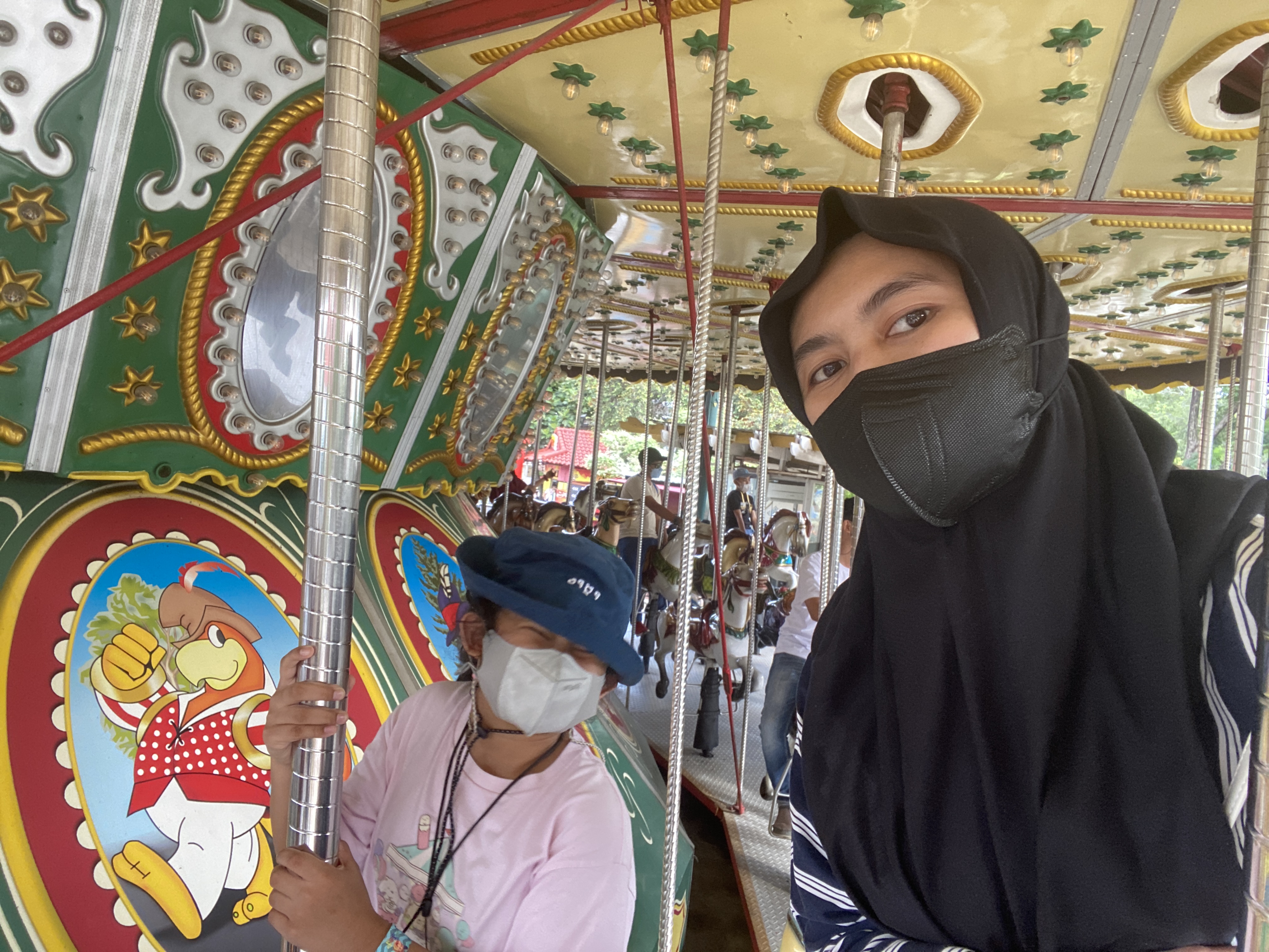 Hari sabtu, si K minta diajakin ke Theme Park. Karena di Jakarta adanya cuma Dufan, jadilah kita akhirnya main di Dufan. Dufan ini udah kelihatan usang banget ya. Seperti kurang terawat gitu loh. Untungnya permainannya masih banyak dan ternyata si K udah bisa main hampir semua permainan di sini dan dia doyan! Kalau aku seh jangan ditanya ya, aku gak suka main di Theme Park gini. Bukannya takut seh, tapi aku tuh suka mabok kalau main2 kayak gini. Kalau udah mabok suka muntah dan pusing. Jadi daripada merepotkan orang lain mending aku jadi seksi dokumentasi aja ya.