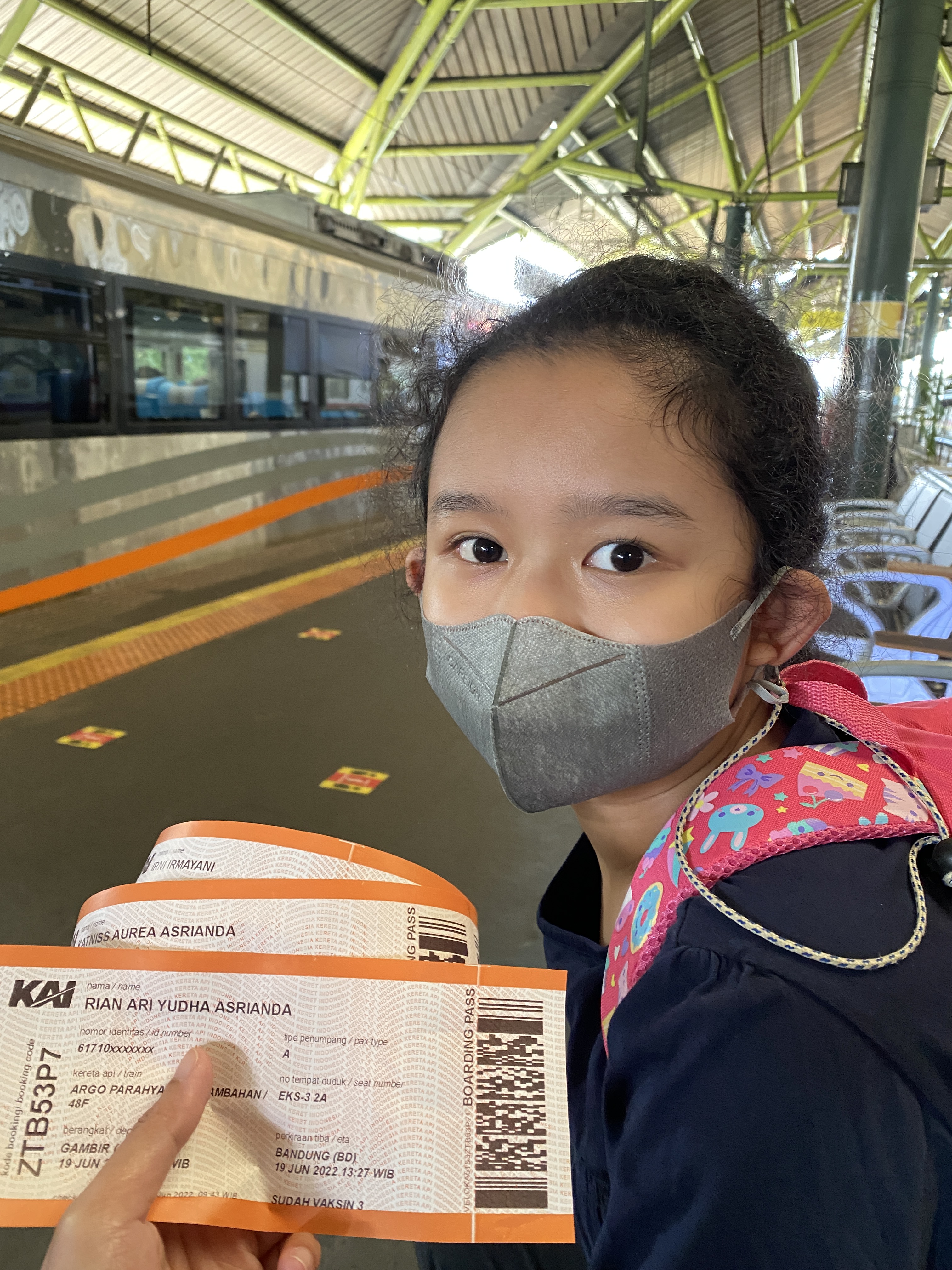 Ternyata, stasiun kereta di Jakarta udah keren banget ya. Tiketnya udah bisa dibeli di internet. Terus karena 2022 masih perlu syarat vaksin, aplikasinya pun udah terkoneksi ke peduli lindungi jadi gak susah lagi. Kami beli tiket yang bisnis dan enak banget keretanya, bersih dan rapi, makanannyapun enak dan si K suka. Cuma gak berani lihat toiletnya seh, semoga bersih juga deh.
